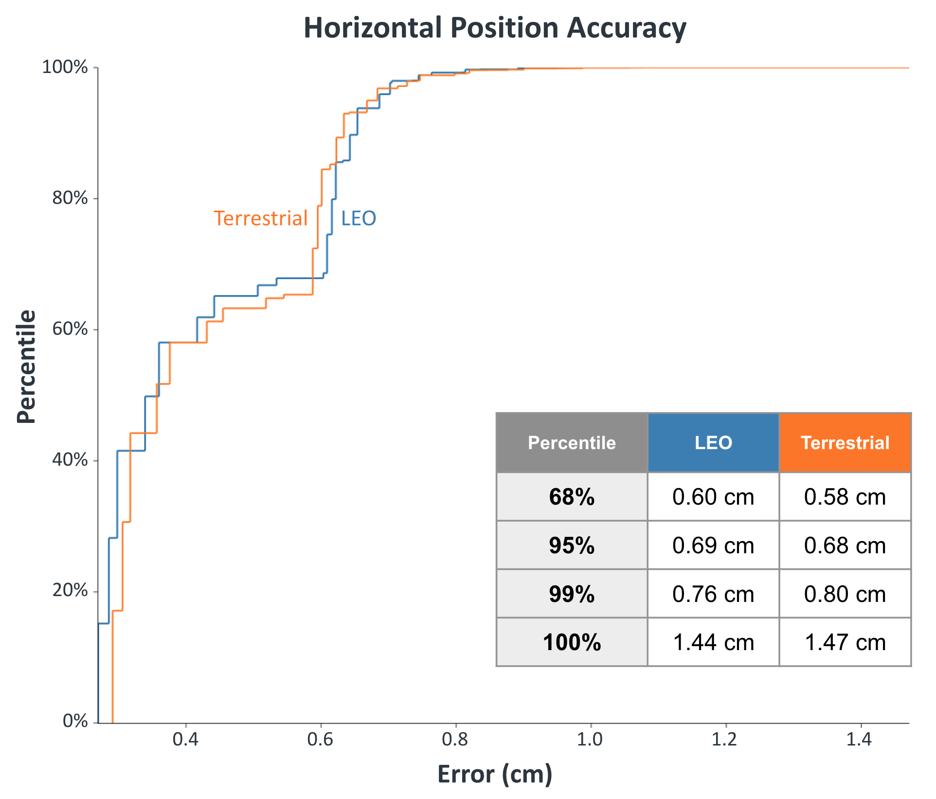 Accuracy & Convergence | Because of bandwidth and latency limits, L-Band is optimized for PPP services that may require several minutes to converge to full accuracy. | LEO networks support instant RTK convergence, maintaining continuous fixed solutions that respond immediately to movement or environmental change. |