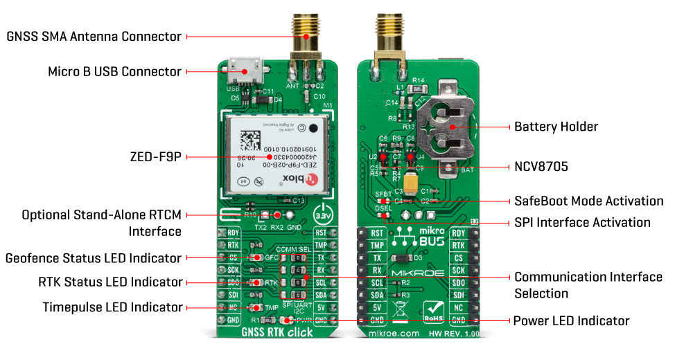 This walkthrough uses the original GNSS RTK Click featuring the dual-band (L1/L2) u-blox ZED-F9P-05B receiver.